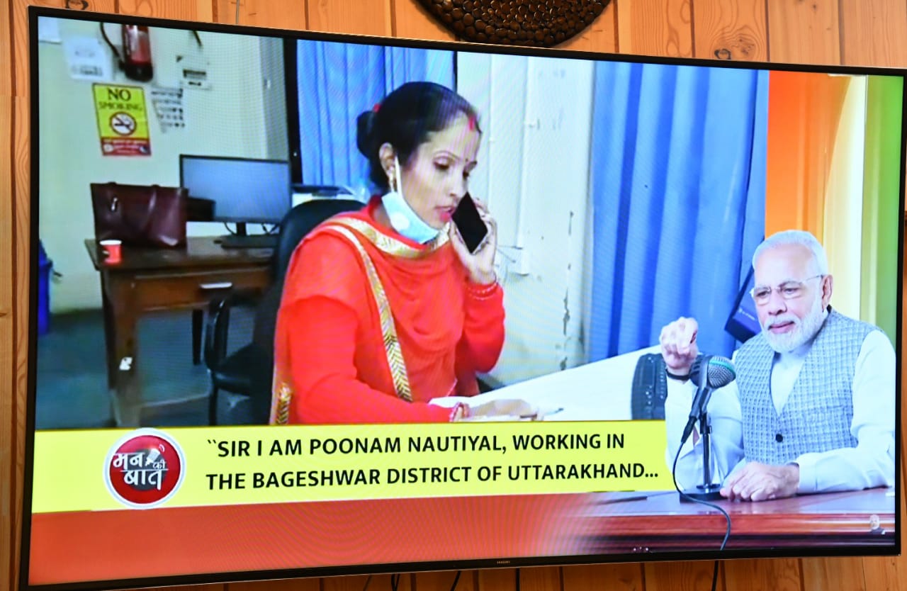मन की बात के दौरान प्रधानमंत्री ने बागेश्वर जनपद की हेल्थ वर्कर श्रीमती पूनम नौटियाल से बात की।