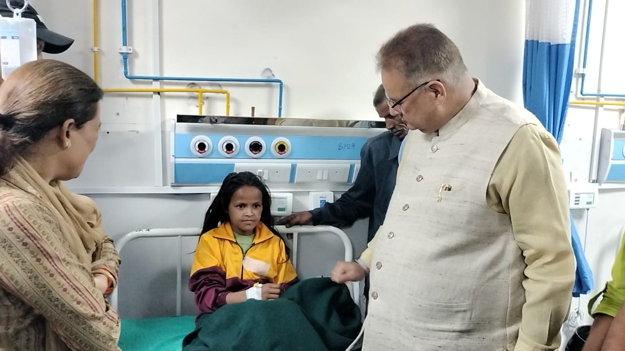 अल्मोड़ा में कार दुर्घटना में घायल स्कूली बच्चों का हाल जानते कृषि मंत्री गणेश जोशी