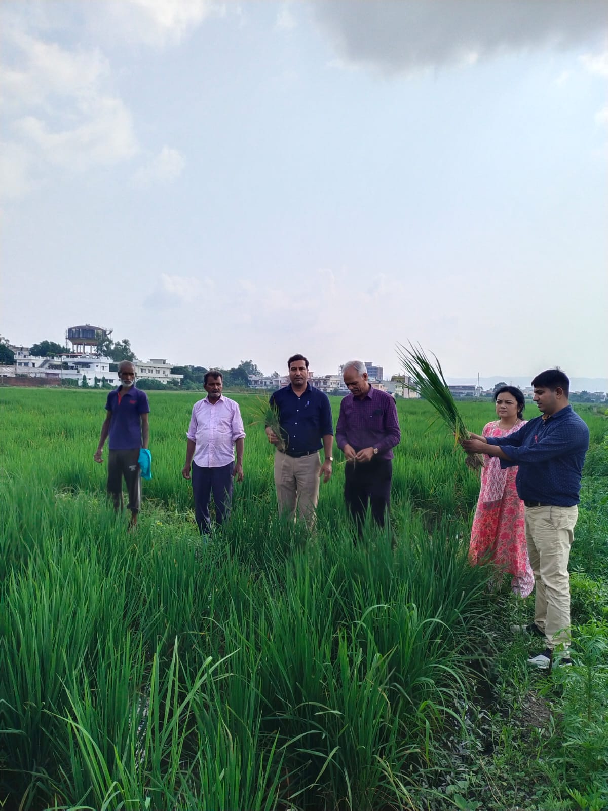 श्री गुरु राम राय विश्वविद्यालय के कृषि वैज्ञानिकों द्वारा धान के खेतों का निरीक्षण किया गया कृषि विशेषज्ञ द्वारा धान में इस वर्ष आने वाली बोने पन की समस्या के बारे में विस्तार पूर्वक बताया गया स्कूल ऑफ़ एग्रीकल्चर साइंस के पादप रोग विज्ञान के विभागाध्यक्ष डॉक्टर खिलेंद्र सिंह द्वारा किसानों को धान की बोने पन की बीमारी की पहचान कराई गई उन्होंने बताया कि खेत में कुछ पौधों की बढ़वार रुक गई है जिसका मुख्य कारण एक विषाणु है जिसका नाम सावधान राइस ब्लैक स्ट्रीक डार्फ वायरस है इस वायरस के प्रकोप की वजह से इस बार धान में 10 से 12% तक उत्पादन में कमी होने की संभावना है उन्होंने बताया कि यह वायरस एक कीट जिसका नाम बाइट बैक प्लांट हॉपर के द्वारा बीमार पौधों से स्वास्थ्य पौधों में फैलता है यह कीट इस वायरस के वाहक का काम करता है अता बीमारी को नियंत्रित करने के लिए इस कीट को नियंत्रित करना अति आवश्यक है जिसके लिए किसान भाइयों को निरंतर अपने खेत का निरीक्षण करते रहना चाहिए तथा जिन पौधों पर इस कीट का प्रकोप दिखाई दे उन्हें तेजी से हिला कर कीट को पानी पर गिरा देना चाहिए यह कीट पौधों की निचली सतह पर पाए जाते हैं पानी में गिरने के बाद यह पुनः पौधों को संक्रमित नहीं कर पाते रासायनिक नियंत्रण के लिए कीटनाशक ओसीन दवाई का छिड़काव करना चाहिए स्कूल ऑफ़ एग्रीकल्चर साइंस की डीन डॉ प्रियंका बनकोटी के द्वारा बताया गया कि यह बीमारी जल्दी रोपित किए गए धान में ज्यादा पाई जा रही है उन्होंने कहा कि अगली बार किसान भाई श्री गुरु राम राय विश्वविद्यालय के कृषि विशेषज्ञों द्वारा बताई गई तिथि के अनुसार पौधों को खेत में रोपित करें शस्य विज्ञान के कृषि वैज्ञानिक डॉ जेपी सिंह द्वारा धान की फसल में खरपतवार के नियंत्रण के बारे में बताया गया तथा डॉक्टर मोइनुद्दीन द्वारा धान में उर्वरकों की सही मात्रा का इस्तेमाल करने पर जोर दिया गया