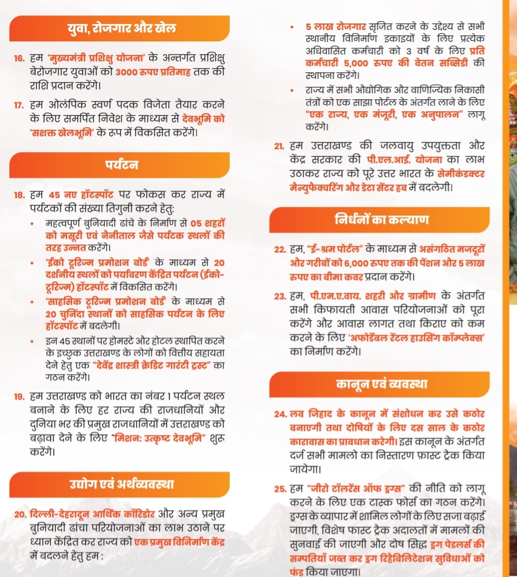 कानून व्यवस्था:लव जिहाद कानून को पहले से ज्यादा सख्त बनाया जाएगा। महिला थानों की संख्या बढ़ाई जाएगी। उधमसिंहनगर और हरिद्वार में तीन नई सशस्त्र पुलिस बटालियन।