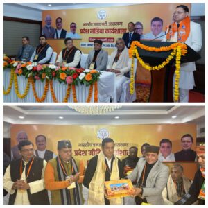 उद्घाटन सत्र को संबोधित करते हुए प्रदेश अध्यक्ष श्री महेंद्र भट्ट ने कहा, हम आगामी लोकसभा चुनावों में होने वाली जीत में मीडिया का रोल सबसे अहम होने वाला है । क्योंकि विपक्ष लगातार मीडिया सोशल मीडिया के माध्यम से नकारत्मक प्रचार करने की रणनीति पर काम रहा है । लेकिन हमे उस नकारात्मकता को सकारात्मक जवाब के साथ आगे बढ़ाना है । सरकार के जनकल्याणकारी कार्यों और संगठन की गतिविधियों जनता के बीच पहुंचाने में मीडिया टीम को अपना सर्वश्रेष्ठ देना है । ताकि पुराने सभी रिकॉर्ड ध्वस्त करते हुए सभी 5 सीटों को जीतकर, मोदी जी को तीसरी बार पीएम बनाने में सहयोग किया जाए ।