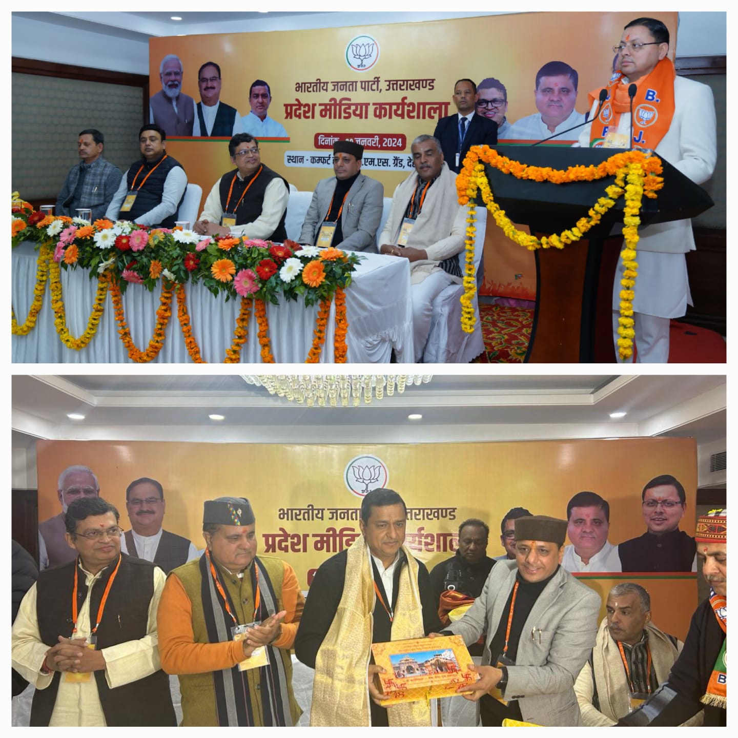 जीएमएस रोड़ स्थित होटल में आयोजित मीडिया टीम कार्यशाला में प्रतिभागियों का आह्वाहन करते हुए मुख्यमंत्री पुष्कर धामी ने कहा, पीएम मोदी के मार्गदर्शन में हमने कठोर नकल कानून, सख्त धर्मांतरण कानून, अवैध धार्मिक अतिक्रमण पर कार्यवाही, मातृ शक्ति को 30 फीसदी आरक्षण जैसे अनेकों ऐतिहासिक कदम उठाए हैं । अब सरकार को यूसीसी का वो ड्राफ्ट मिलने जा रहा है जिसे लागू करने के लिए देवतुल्य जनता ने हमे अपना आशीर्वाद दिया था । आप सबको राज्य और केंद्र के ऐसे तमाम प्रयासों को जनता के मध्य अधिक से अधिक प्रसारित करना है । साथ ही यूसीसी के मुद्दे की विस्तृत जानकारी सभी माध्यमों से देनी है, साथ ही पर विपक्ष द्वारा फैलाई जा रही भ्रांति को भी दूर करना है । हम सभी सौभाग्यशाली हैं कि प्रभु श्री राम अपने मंदिर में पधारे हैं और लगभग 15 हजार वर्षों के बाद आज राम युग का आनंद ले रहे हैं । 5 लाख से अधिक युवाओं ने ईमानदार और पारदर्शी प्रक्रिया के तहत परीक्षाओं में सहभागिता की है ।