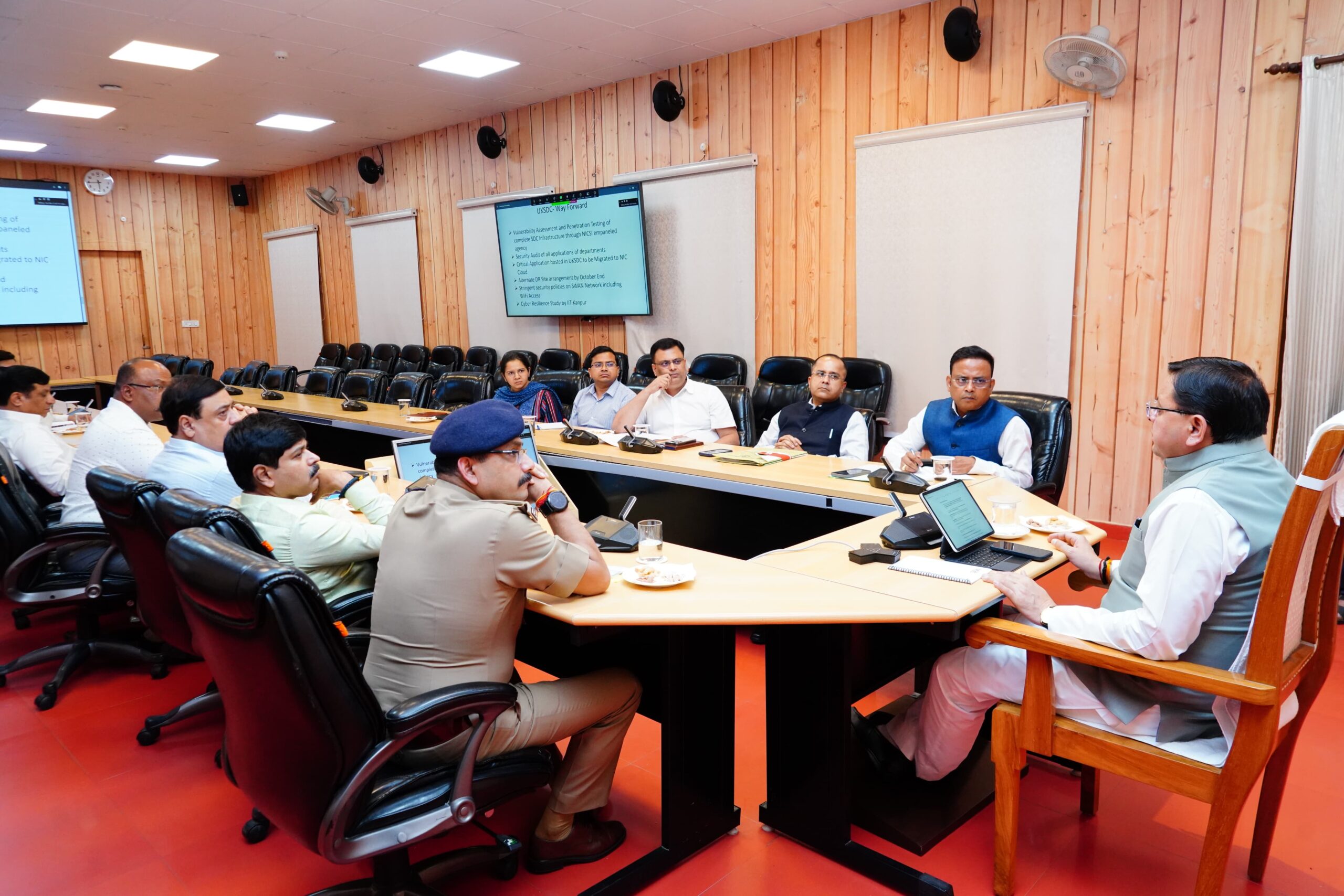 मुख्यमंत्री पुष्कर सिंह धामी ने शनिवार को मुख्यमंत्री आवास में स्टेट डाटा सेंटर में आए मालवेयर एवं अस्थायी रूप से बंद की गई ऑनलाइन सेवाओ के संबंध में स्टेट डाटा सेंटर, स्वान, एन.आई.सी, आई.टी.डी.ए से संबंधित सभी अधिकारियों, विशेषज्ञों, पुलिस विभाग एवं शासन के उच्च अधिकारियों के साथ बैठक की।