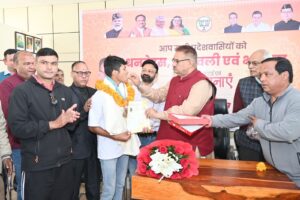 बाल दिवस के अवसर पर फुटबाल में गोल्ड मेडल मिलने पर आयुष बिष्ट को कैबिनेट मंत्री गणेश जोशी ने किया सम्मानित