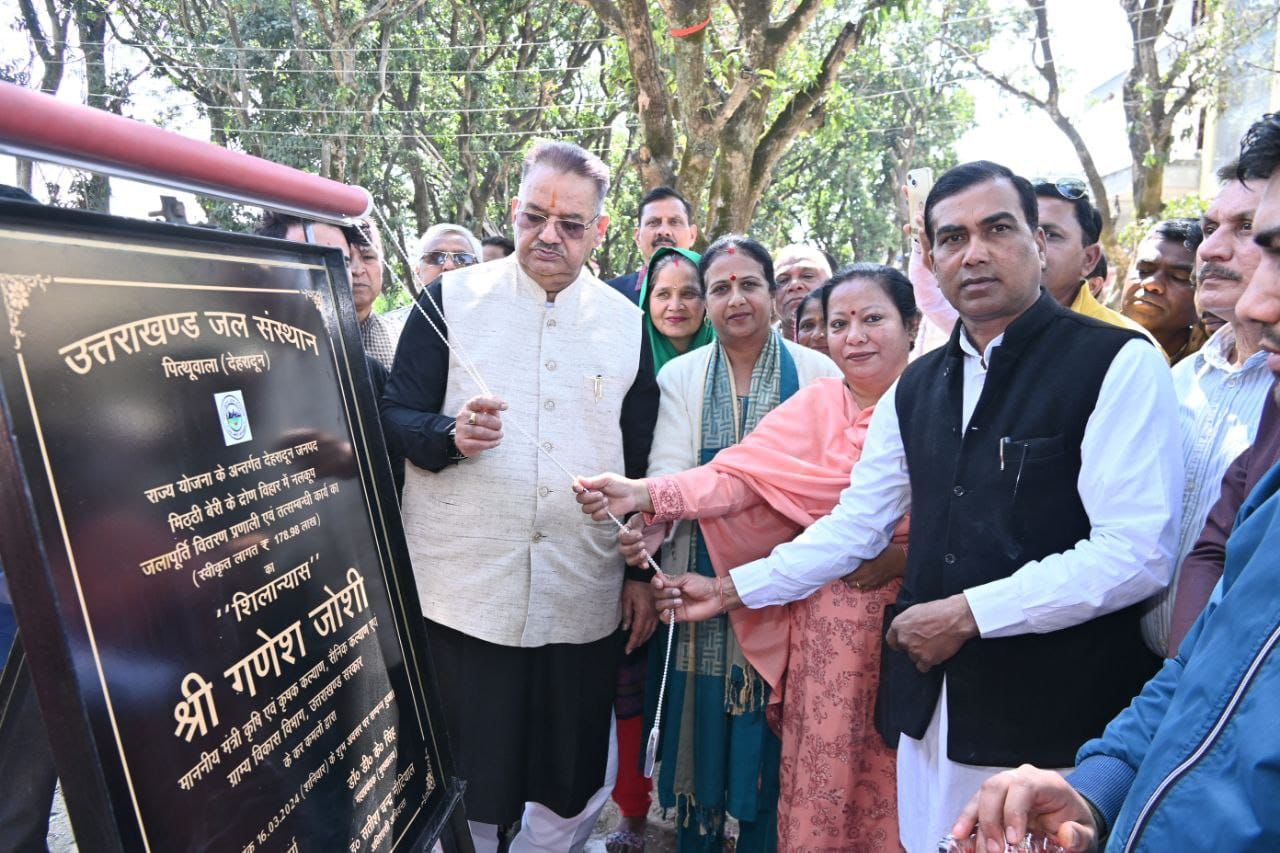 देहरादून, 16 मार्च। कैबिनेट मंत्री गणेश जोशी ने प्रेमनगर में मसूरी विधानसभा क्षेत्र के अंतर्गत वार्ड न0 93 मिठठी बेरी के द्रोण विहार में राज्य योजना के अंतर्गत ₹178.98 लाख की लागत से नलकूप जलापूर्ति वितरण प्रणाली एवं तत्संबंधी कार्यों की योजना का शिलान्यास किया गया। गौरतलब है कि विगत 10 दिनों से मसूरी विधानसभा क्षेत्र के अंतर्गत अनुमानित लागत करीब 70 करोड़ रुपए से अधिक की लागत से विभिन्न विकास योजनाओं का लोकार्पण एवं शिलान्यास किया गया है।
