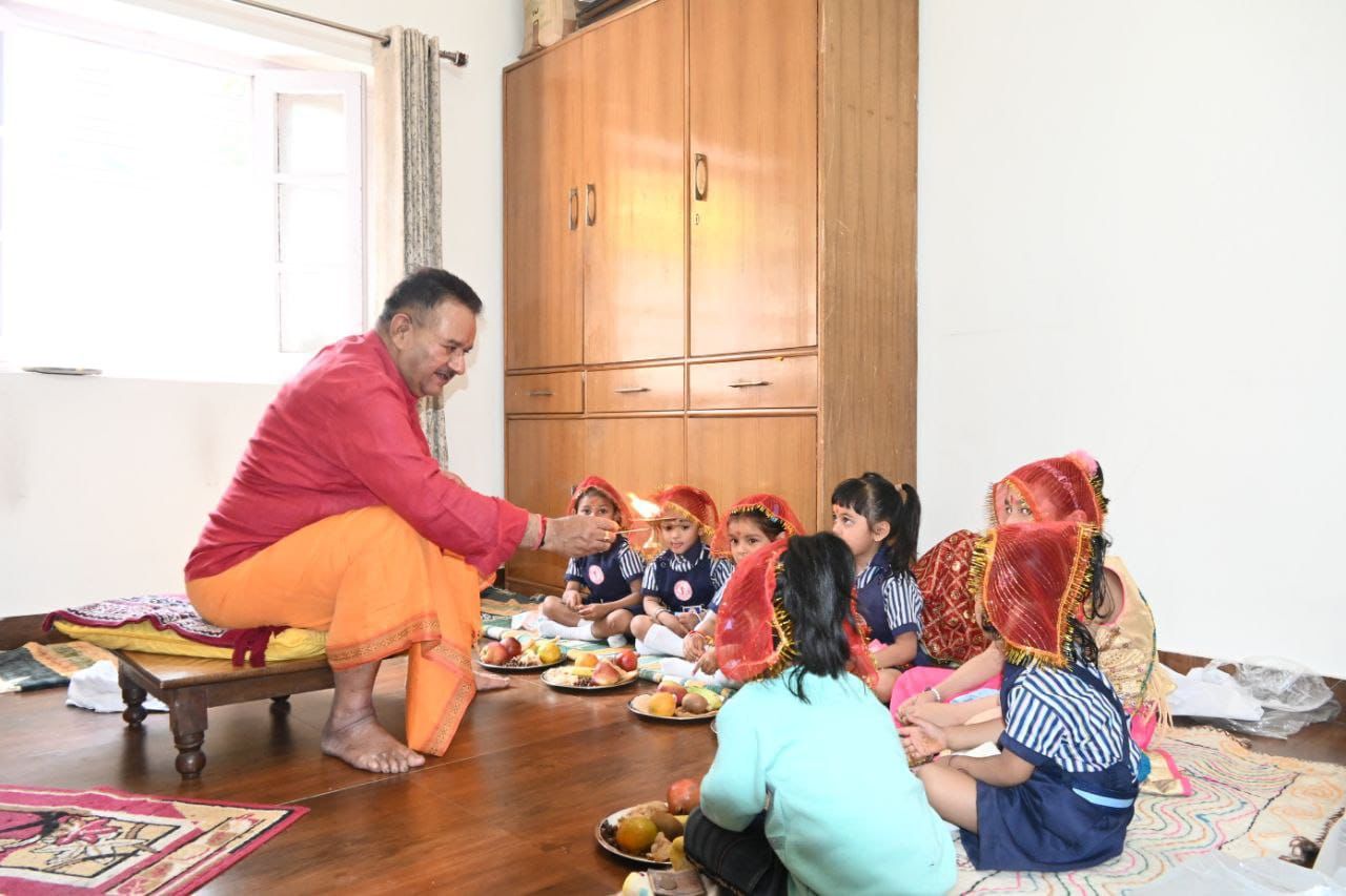 कैबिनेट मंत्री गणेश जोशी ने आज चैत्र नवरात्रि की माँ दुर्गा का आठवां स्वरूप मां महागौरी को समर्पित दुर्गा अष्टमी के अवसर पर हाथी बड़कला स्थित अपने शासकीय आवास पर नौ दुर्गा स्वरूपा कन्याओं का विधिवत विशेष पूजन अर्चन किया। मंत्री गणेश जोशी ने कन्याओं के पांव पखारे, उनका विधि विधान से पूजन किया चुनरी ओढाई, आरती उतारी, श्रद्धापूर्वक भोजन कराया दक्षिणा और उपहार देकर मंत्री गणेश जोशी ने नौ दुर्गा स्वरूपा कन्याओं का आशीर्वाद प्राप्त किया। इस अवसर पर कैबिनेट मंत्री गणेश जोशी ने मां दुर्गा के आठवें रूप महागौरी की उपासना कर प्रदेश वासियों की सुख-समृद्धि एवं स्वास्थ्य के लिए प्रार्थना की। कैबिनेट मंत्री गणेश जोशी ने कहा कि हमारी आस्था और श्रद्धा हमारे त्यौहार समाज को बड़ा संदेश देते हैं। आज के आधुनिक समाज में नवरात्र और अष्टमी पूजन जैसे त्यौहार बेटियों को बेटों के बराबर ही स्थान एवं महत्व और आगे बढ़ने का अवसर प्रदान करने और उनका सम्मान करने व बेटियों के संरक्षण का संदेश देता है।