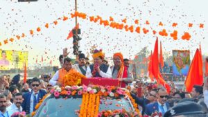 रुद्रपुर। मुख्यमंत्री पुष्कर सिंह धामी का शनिवार को रुद्रपुर आगमन किसी उत्सव से कम नहीं रहा। त्रिशूल चौक पर भव्य त्रिशूल के लोकार्पण के पश्चात मुख्यमंत्री का रोड शो एक ‘शिव बारात’ के रूप में निकला, जिसकी दिव्यता और भव्यता ने पूरे शहर को भक्तिमय कर दिया। फूलों से विशेष रूप से सुसज्जित वाहन पर सवार मुख्यमंत्री के साथ पूर्व केंद्रीय मंत्री व सांसद अजय भट्ट, महापौर विकास शर्मा, विधायक शिव अरोरा और भाजपा जिलाध्यक्ष कमल जिंदल सहित तमाम वरिष्ठ नेता मौजूद रहे। रोड शो के दौरान समूचा मार्ग ‘बम-भोले’ और ‘हर-हर महादेव’ के उद्घोष से गुंजायमान रहा, जिससे वातावरण में एक अद्भुत ऊर्जा का संचार हुआ। इस ऐतिहासिक रोड शो का आकर्षक दृश्य तब देखने को मिला जब मुख्यमंत्री पुष्कर सिंह धामी स्वयं डमरू बजाते नजर आए। ढोल-नगाड़ों और गाजे-बाजे की थाप पर थिरकते शिव भक्तों के बीच मुख्यमंत्री का यह अंदाज़ जनता के आकर्षण का केंद्र बना रहा। पूरे मार्ग पर जगह-जगह जेसीबी मशीनों के माध्यम से मुख्यमंत्री पर भारी पुष्प वर्षा की गई, जिससे सड़कें फूलों की पंखुड़ियों से पट गईं। छोलिया नृत्य दल की पारंपरिक प्रस्तुतियों ने इस आयोजन में चार चांद लगा दिए, जिसे देखने के लिए सड़कों के दोनों ओर हजारों की भीड़ उमड़ पड़ी। रुद्रपुर की ‘मिनी इंडिया’ वाली छवि इस रोड शो में साफ दिखाई दी, जहाँ पर्वतीय समाज, बंगाली समाज, सिख समाज, पंजाबी समाज, पूर्वांचल समाज और जाट समाज सहित समाज के विभिन्न वर्गों ने अपनी पारंपरिक वेशभूषा और उत्साह के साथ मुख्यमंत्री का स्वागत किया। महिला मोर्चा की भारी उपस्थिति और समाज के हर तबके द्वारा की गई पुष्प वर्षा का जवाब मुख्यमंत्री ने भी जनता पर फूल बरसाकर और हाथ हिलाकर दिया। यह आत्मीय संवाद मुख्यमंत्री और रुद्रपुर की जनता के बीच के गहरे जुड़ाव को प्रदर्शित कर रहा था। त्रिशूल चौक से शुरू हुआ यह विशाल रोड शो मुख्य मार्ग से होता हुआ गांधी पार्क पहुंचकर संपन्न हुआ। गांधी पार्क पहुंचने पर पार्टी कार्यकर्ताओं और स्थानीय निवासियों ने मुख्यमंत्री का जोरदार अभिनंदन किया। हजारों की संख्या में जुटे लोगों ने इस क्षण को अपने कैमरों में कैद किया, जिससे यह स्पष्ट हो गया कि विकास और सांस्कृतिक पुनरुत्थान के इस संगम को जनता का भरपूर समर्थन मिल रहा है।