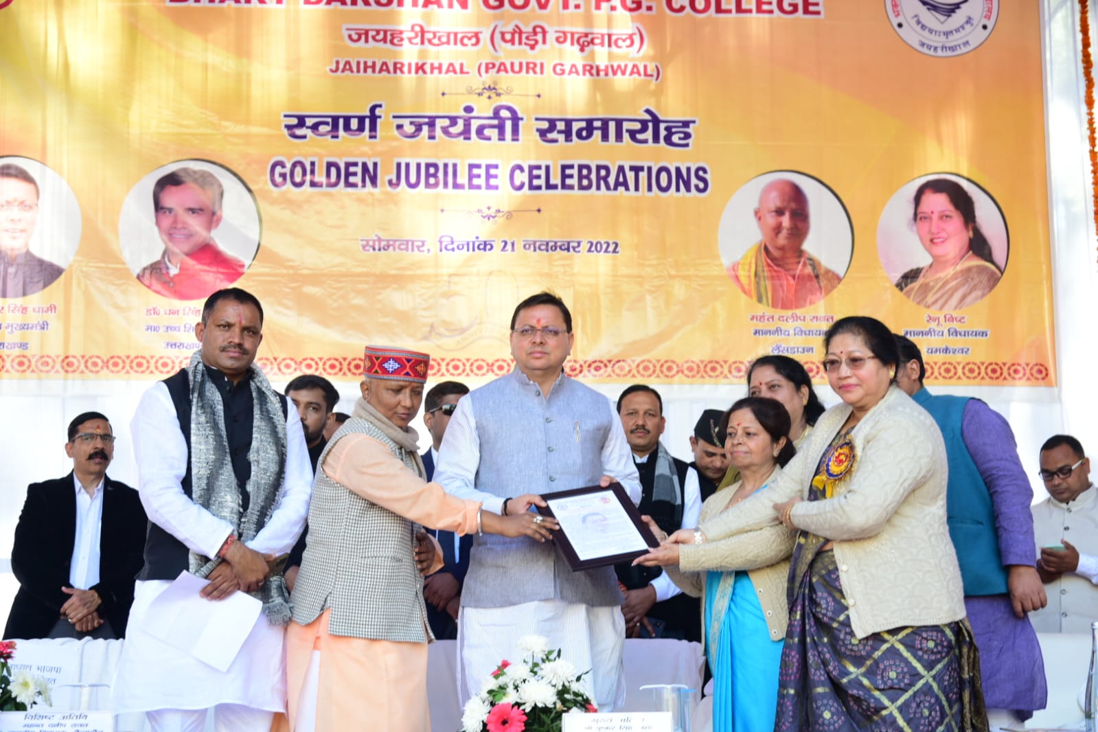 मुख्यमंत्री पुष्कर सिंह धामी ने जयहरीखाल के भक्तदर्शन राजकीय स्नातकोत्तर महाविद्यालय के स्वर्ण जयंती समारोह में मुख्य अतिथि के रूप में प्रतिभाग किया। इस अवसर पर उन्होंने महान विभूति भक्तदर्शन जी को श्रद्धांजलि अर्पित की।