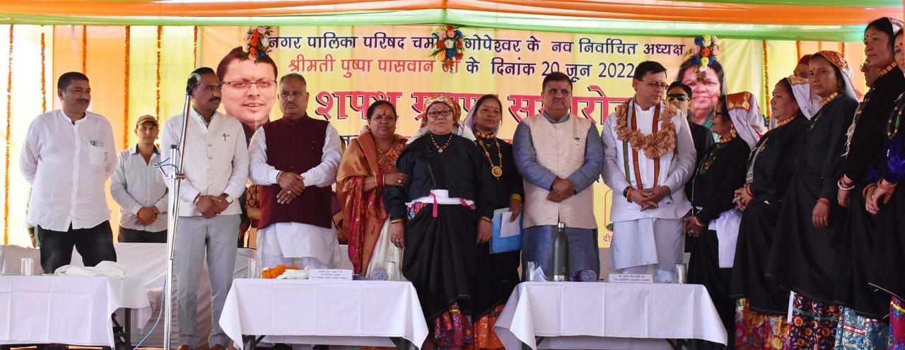 मुख्यमंत्री पुष्कर सिंह धामी ने सोमवार को गोपेश्वर में चमोली-गोपेश्वर नगर पालिका की नवनिर्वाचित अध्यक्ष पुष्पा पासवान के शपथ ग्रहण समारोह में प्रतिभाग किया।
