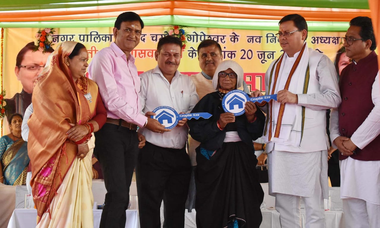 कार्यक्रम के दौरान मुख्यमंत्री ने रैणी आपदा में बेघर हुई वृद्वा सोणी देवी को ग्राफिक एरा ग्रुप ऑफ इन्सीट्यूट की ओर से बनवाए गए नए घर की चाभी सौंपी। जोशीमठ क्षेत्र के रैंणी गांव में फरवरी 2021 की आपदा में सोणी देवी का घर जमींदोज हो गया था। ग्राफिक एरा ग्रुप ऑफ इन्सीट्यूट के चेयरमैन डा. कमल घनशाला ने सोणी देवी के लिए आसपास सुरक्षित इलाके में घर बनाने का निर्णय लिया था। सोणी देवी को मेरग गांव में नया घर बनवाया गया। मुख्यमंत्री ने उन्हें नए घर की चाभी सौंपी। नया घर मिलने पर सोणी देवी ने मुख्यमंत्री एवं ग्राफिक ऐरा गु्रप का आभार व्यक्त किया। इस दौरान ग्राफिक एरा के महानिदेश डा. संजय जसोला एवं निदेशक(इंफ्रा) डा.सुभाष गुप्ता भी मौजूद थे। इस दौरान नीती माणा की महिलाओं ने मुख्यमंत्री को पारम्परिक भोजपत्र की माला भेंट कर उनका अभिवादन किया।