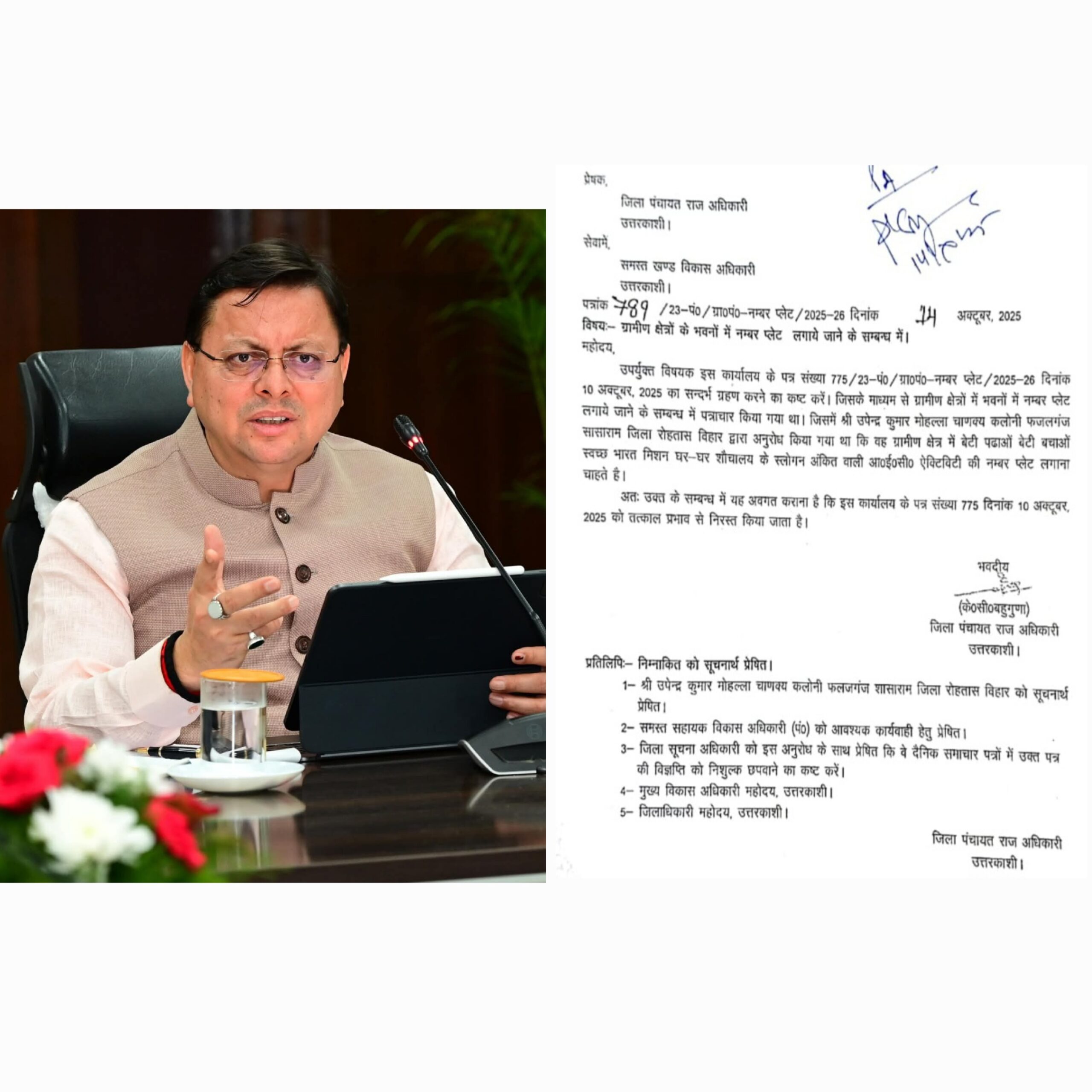 मुख्यमंत्री श्री पुष्कर सिंह धामी ने सोशल मीडिया पर वायरल हुए पत्र का संज्ञान लेते हुए जिला पंचायतराज अधिकारी, टिहरी गढ़वाल के आदेश को तत्काल प्रभाव से रद्द करने के साथ ही मामले की पूरी जांच कराने और दोषियों के खिलाफ आवश्यक कार्रवाई सुनिश्चित करने के निर्देश भी जारी किए हैं।