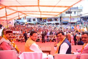 मुख्यमंत्री धामी ने मंगलवार को धूमाकोट बाजार, पौड़ी में गढ़वाल लोकसभा क्षेत्र से भाजपा प्रत्याशी अनिल बलूनी के पक्ष में आयोजित जनसभा को संबोधित किया