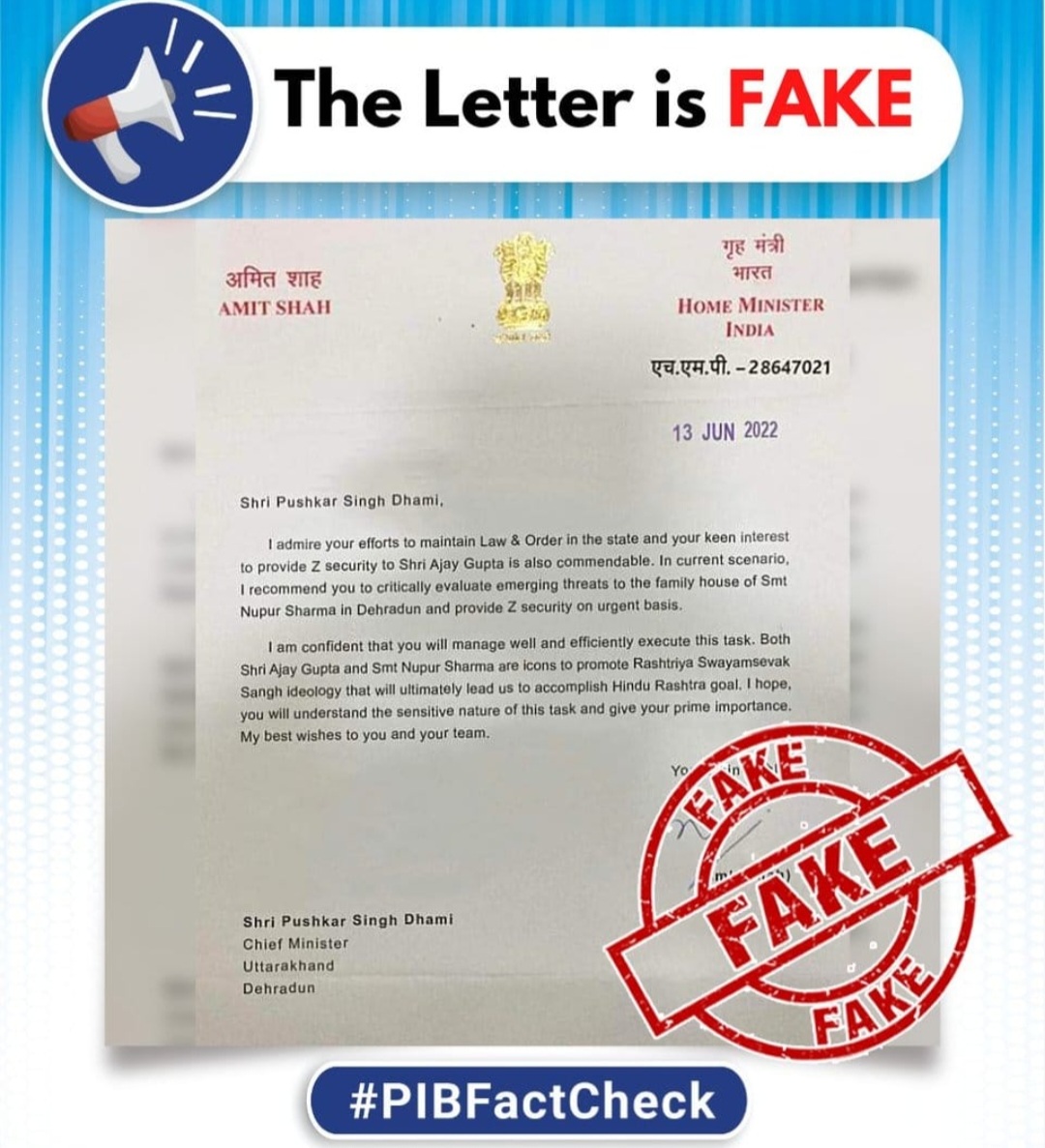 गौरतलब है कि पीआईबी की फेक्टचैक द्वारा भी इस पत्र को फेक पाया गया है।