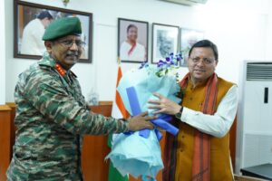मुख्यमंत्री धामी से सचिवालय में बी.आर.ओ के महानिदेशक लेफ्टिनेंट जनरल श्री रघु श्रीनिवासन ने भेंट की..