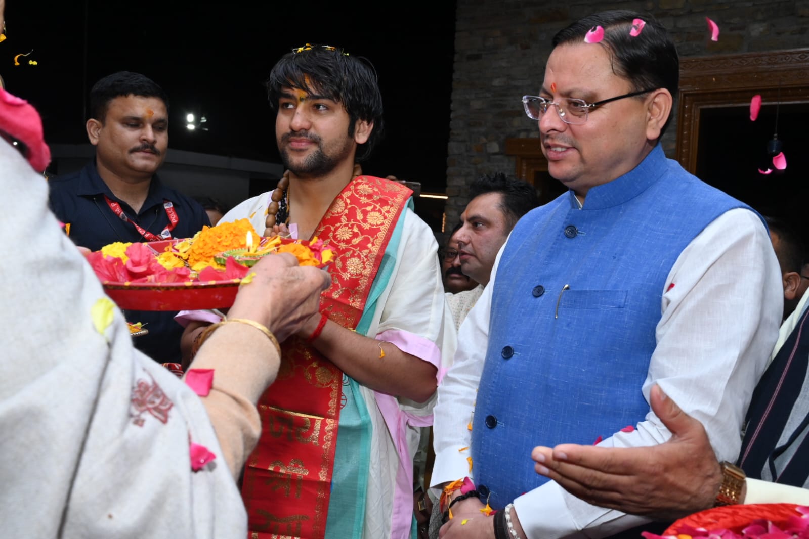 मुख्यमंत्री पुष्कर सिंह धामी ने शनिवार को परेड ग्राउण्ड में आयोजित कार्यक्रम बागेश्वर धाम के पीठाधीश्वर धीरेन्द्र शास्त्री के कार्यक्रम में शामिल हुये