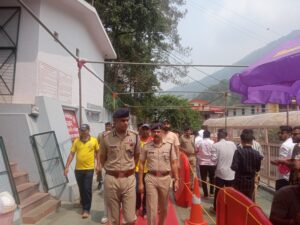 दिनांक 15 जून 2025 को आयोजित होने वाले *कैंची धाम स्थापना दिवस मेले* की सुरक्षा, यातायात एवं व्यवस्थाओं की तैयारियों के क्रम में *अपर पुलिस महानिदेशक (अपराध एवं कानून व्यवस्था) उत्तराखण्ड, श्री वी. मुरुगेशन द्वारा आज कैंची धाम क्षेत्र का स्थलीय निरीक्षण किया गया।* निरीक्षण के दौरान उन्होंने *संपूर्ण आयोजन क्षेत्र में सुरक्षा व्यवस्था, भीड़ नियंत्रण, यातायात प्रबंधन, निगरानी व्यवस्था एवं श्रद्धालुओं की सुविधा से जुड़े बिंदुओं की बारीकी से समीक्षा की।* इस अवसर पर पुलिस महानिरीक्षक कुमाऊँ परिक्षेत्र श्रीमती रिधिम अग्रवाल, वरिष्ठ पुलिस अधीक्षक नैनीताल श्री प्रहलाद नारायण मीणा सहित अन्य पुलिस अधिकारी उपस्थित रहे।
