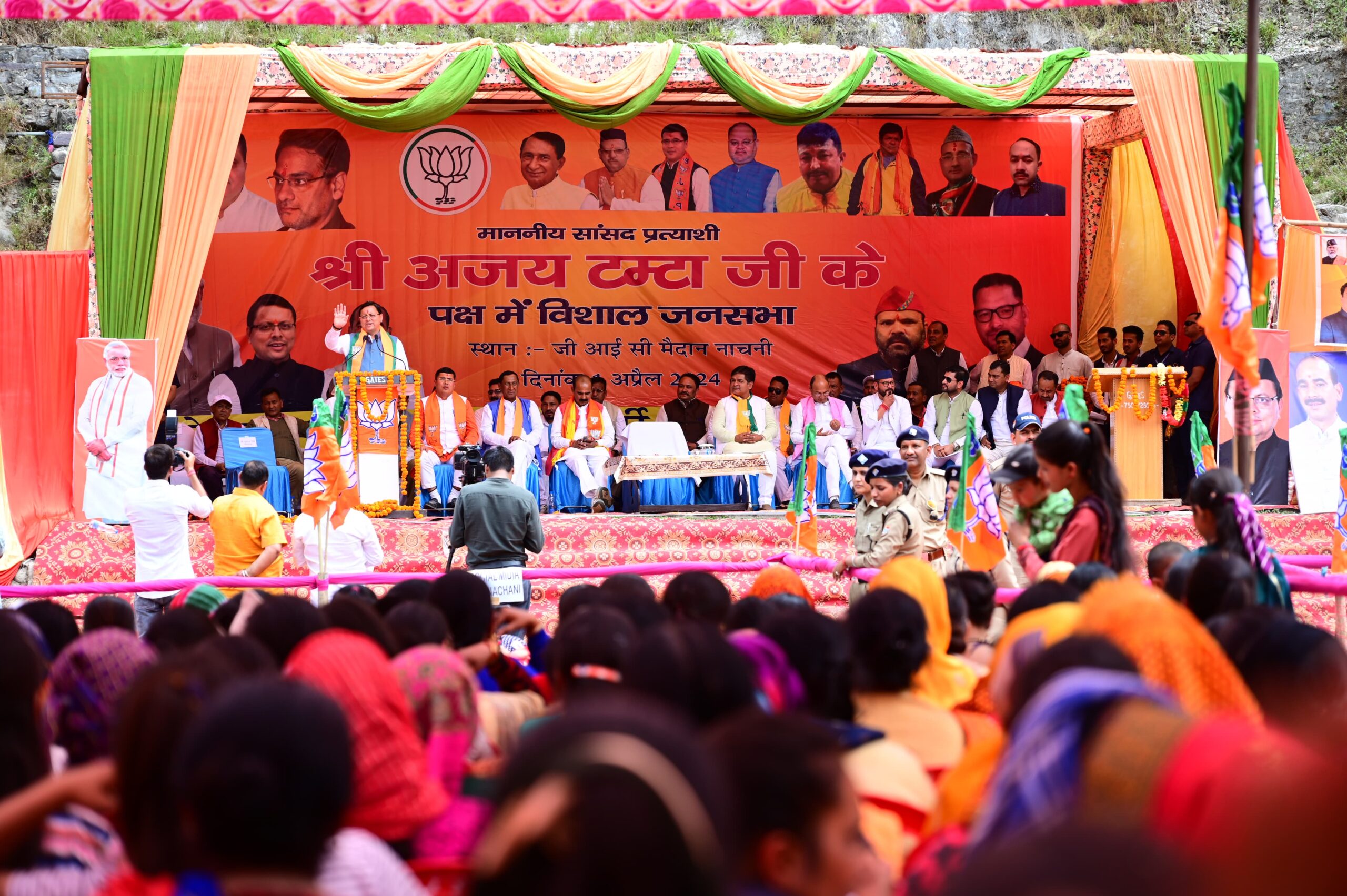 मुख्यमंत्री पुष्कर सिंह धामी ने सोमवार को जी.आई.सी., खेल मैदान, नाचनी, पिथौरागढ़ में अल्मोड़ा लोकसभा सीट से भाजपा प्रत्याशी श्री अजय टम्टा के पक्ष में आयोजित जनसभा में प्रतिभाग किया