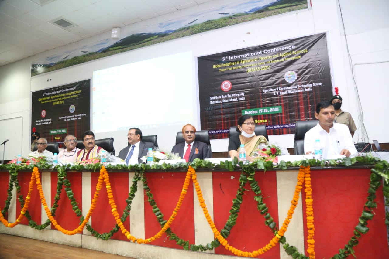 श्री गुरु राम राय विश्वविद्यालय के कृषि संकाय और एग्रीकल्चर एंड एनवायरमेंटल टेक्नोलॉजी डेवलपमेंट सोसायटी के संयुक्त तत्वावधान में तीसरी दो दिवसीय इंटरनेशनल कांफ्रेंस का आयोजन किया गया | कॉन्फ्रेंस का मुख्य विषय ग्लोबल इनीशिएटिव इन एग्रीकल्चर फॉरेस्ट्री और अप्लाइड साइंस पर आधारित खाद्य सुरक्षा पर्यावरण सुरक्षा और सतत विकास को रखा गया| कार्यक्रम में मुख्य अतिथि कृषि मंत्री सुबोध उनियाल उपस्थित रहे|