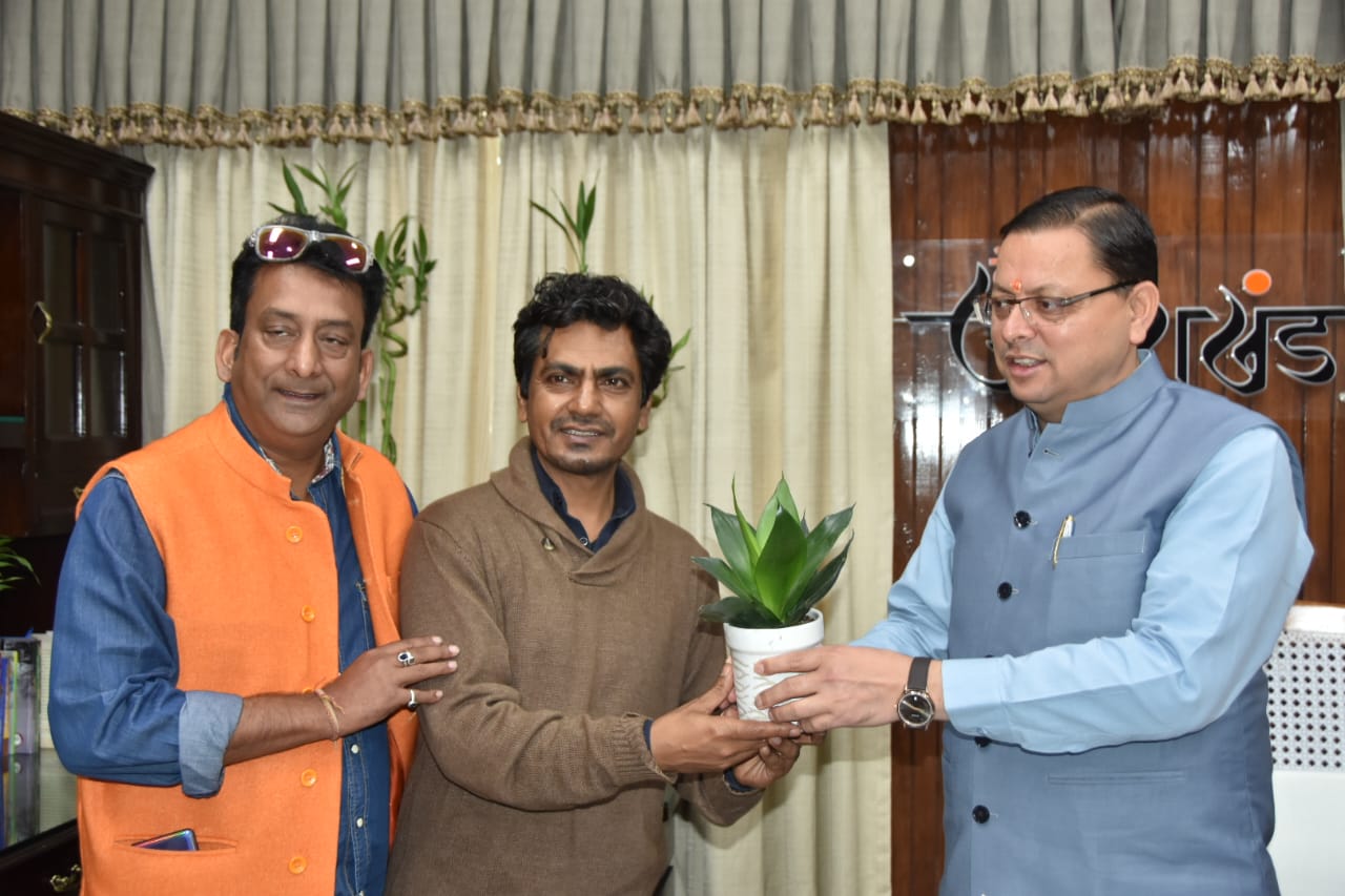 मुख्यमंत्री श्री पुष्कर सिंह धामी से शनिवार को मुख्यमंत्री कैम्प कार्यालय में फिल्म अभिनेता श्री नवाज़ुद्दीन सिद्दिकी ने भेंट की। नवाजुद्दीन सिद्दिकी उत्तराखण्ड में फिल्म की शूटिंग कर रहे हैं। रोतु की बेली, चंबा, मसूरी एवं देहरादून में उनके द्वारा फिल्मांकन किया गया। उन्होंने कहा कि फिल्मों की शूटिंग के लिए उत्तराखण्ड में बहुत अच्छा वातावरण है। उत्तराखण्ड का नैसर्गिक सौन्दर्य फिल्मांकन के लिए लोगों को आकर्षित कर रहा है।