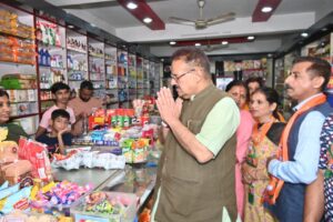 किशन नगर बाजार में जनसंपर्क करते कैबिनेट मंत्री गणेश जोशी।*