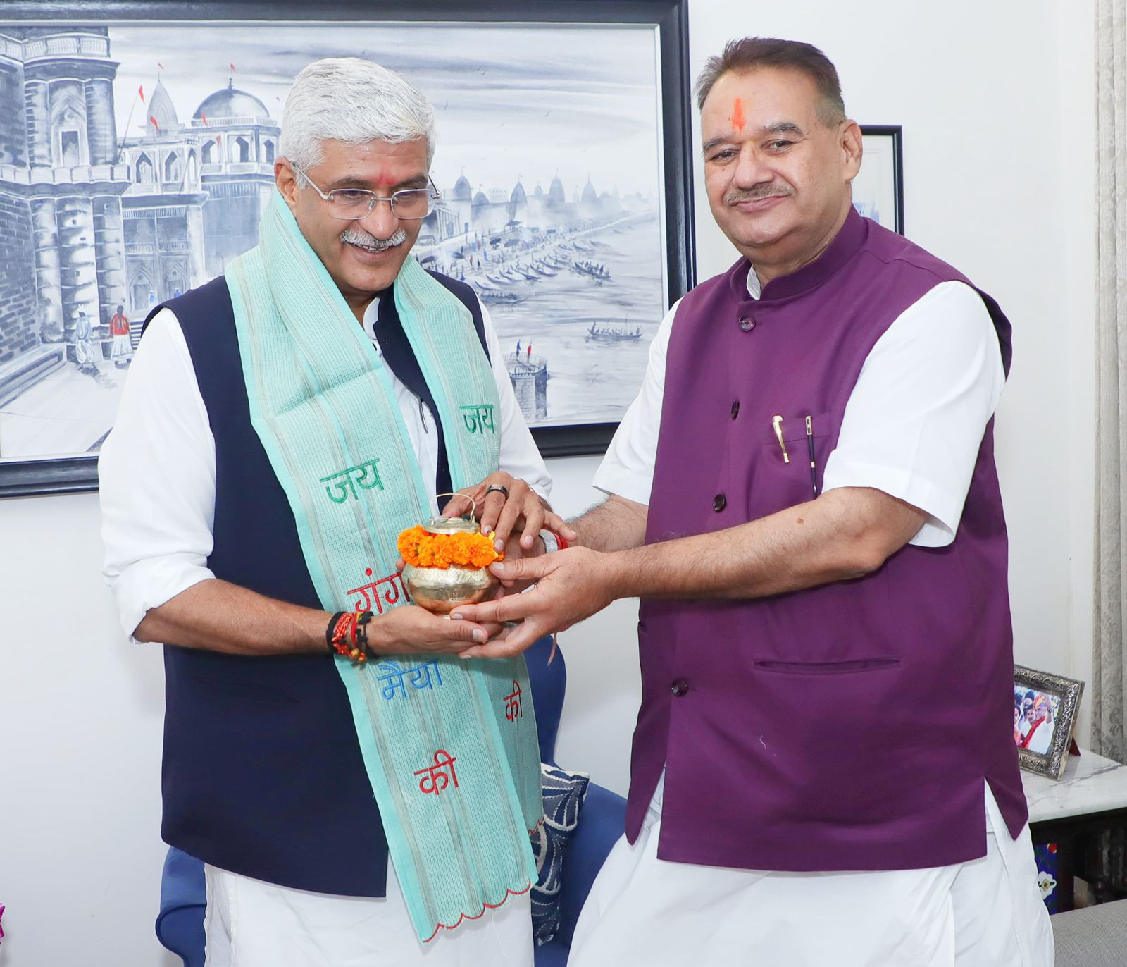 मुलाकात के दौरान मंत्री गणेश जोशी ने केंद्रीय मंत्री गजेन्द्र सिंह शेखावत को गंगाजल भी भेंट किया।