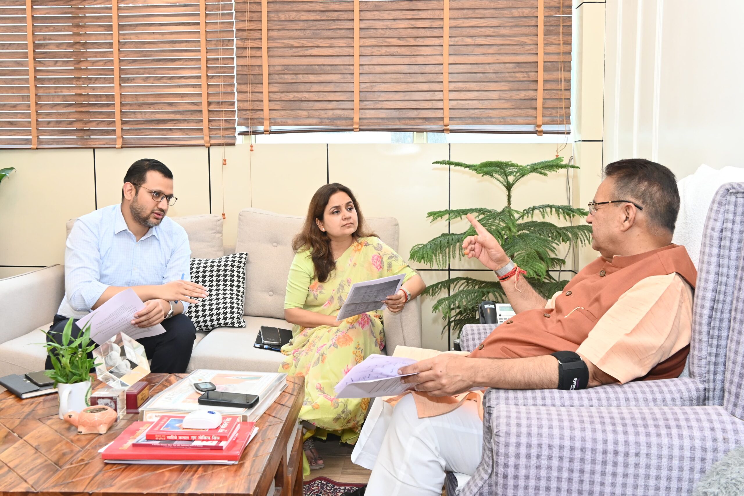 प्रदेश के ग्राम्य में विकास मंत्री गणेश जोशी ने अपने शासकीय कार्यालय में आज ग्राम्य विकास विभाग के उच्च अधिकारियों के साथ विभागीय समीक्षा बैठक कर योजनाओं की प्रगति की विस्तार से जानकारी ली।