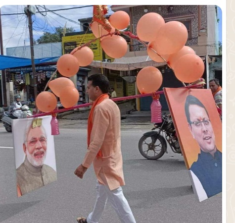 मोदी और धामी की तस्वीर लगी भाजपा प्रदेश प्रवक्ता नवीन ठाकुर की कावड़ रही आकर्षण का केंद्र,