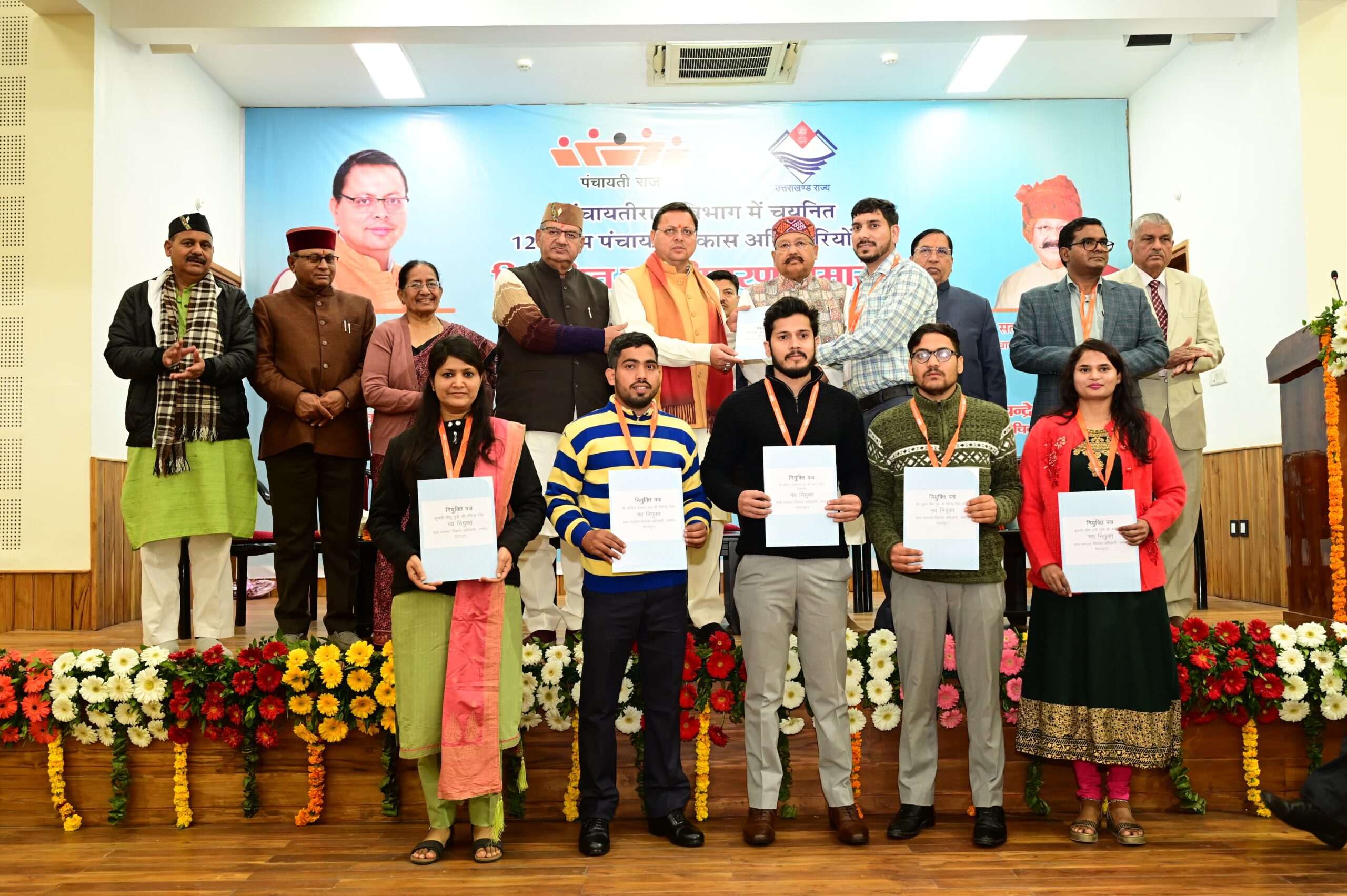 पंचायतीराज मंत्री श्री सतपाल महाराज ने सभी नवचयनित ग्राम पंचायत विकास अधिकारियों को शुभकामनाएं देते हुए कहा कि प्रदेश में डबल इंजन की सरकार द्वारा प्रदेश के सर्वांगीण विकास के लिए अनेक योजनाएं चलाई जा रही हैं। जनवरी 2025 में समान नागरिक संहिता लागू कर उत्तराखण्ड यह कानून लागू करने वाला देश का पहला राज्य बना है। पंचायतीराज विभाग द्वारा ग्राम पंचायतों में अवस्थापना सुविधाओं के तहत पंचायत भवनों का निर्माण, अतिरिक्त कक्षों का निर्माण कराये जा रहे हैं। विभाग द्वारा परिवार रजिस्टर, जन्म-मृत्यु प्रमाण पत्र, भवन निर्माण अनापत्ति प्रमाण पत्र ऑनलाइन निर्गत किये जा रहे हैं। उन्होंने कहा क पंचायतों में कम्प्यूटीकरण का कार्य किया जा रहा है। आगामी दो वर्षों में सभी पंचायतों में कम्प्यूटर स्थापित किये जायेंगे।