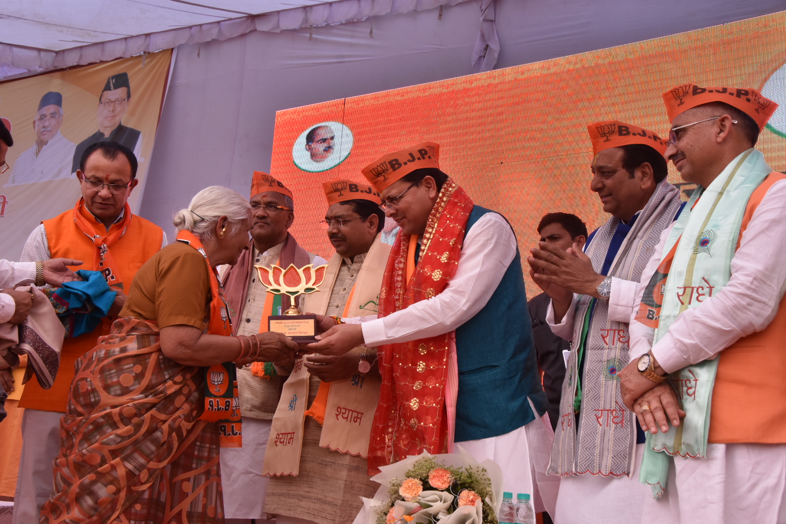मुख्यमंत्री पुष्कर सिंह धामी ने सभा को संबोधित करते हुए भारतीय जनता पार्टी के स्थापना दिवस की शुभकामनाएं दी।