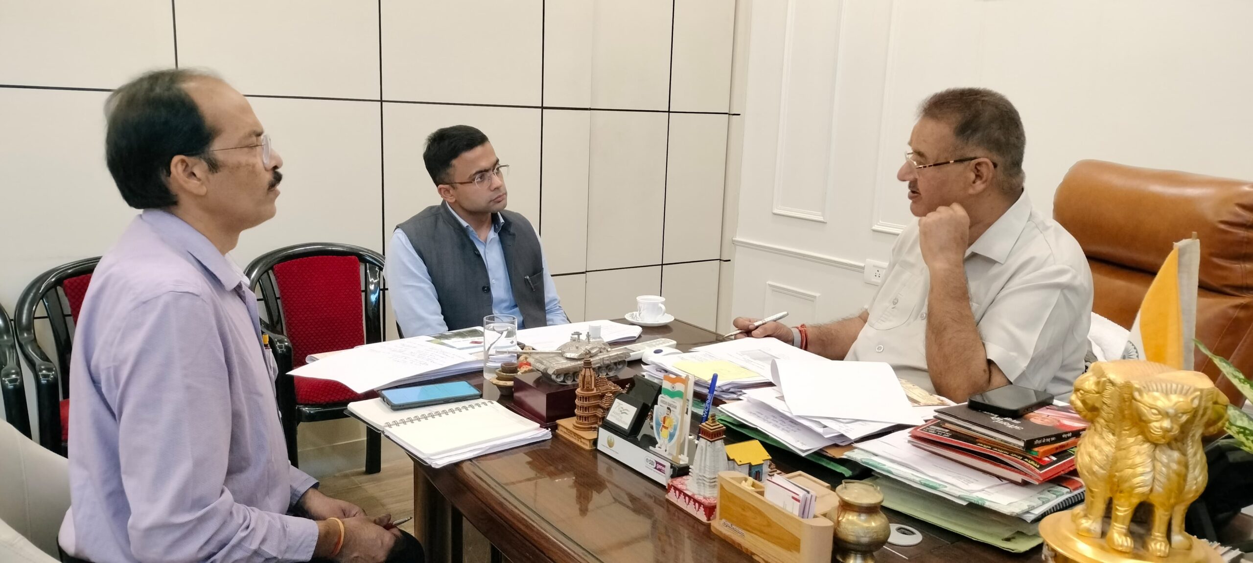 पीएमजीएसवाई के अधिकारियों के साथ बरसात से क्षतिग्रस्त तथा बंद हुई सड़कों की समीक्षा करते ग्राम्य विकास मंत्री गणेश जोशी
