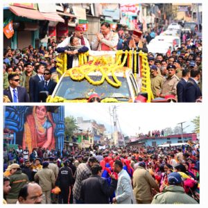 मुख्यमंत्री धामी ने प्राचीन देवल से अगस्त्यमुनि के खेल मैदान तक विशाल रोड शो में प्रतिभाग किया और हजारों हजार स्थानीय जनता ने मुख्यमंत्री धामी का स्वागत किया