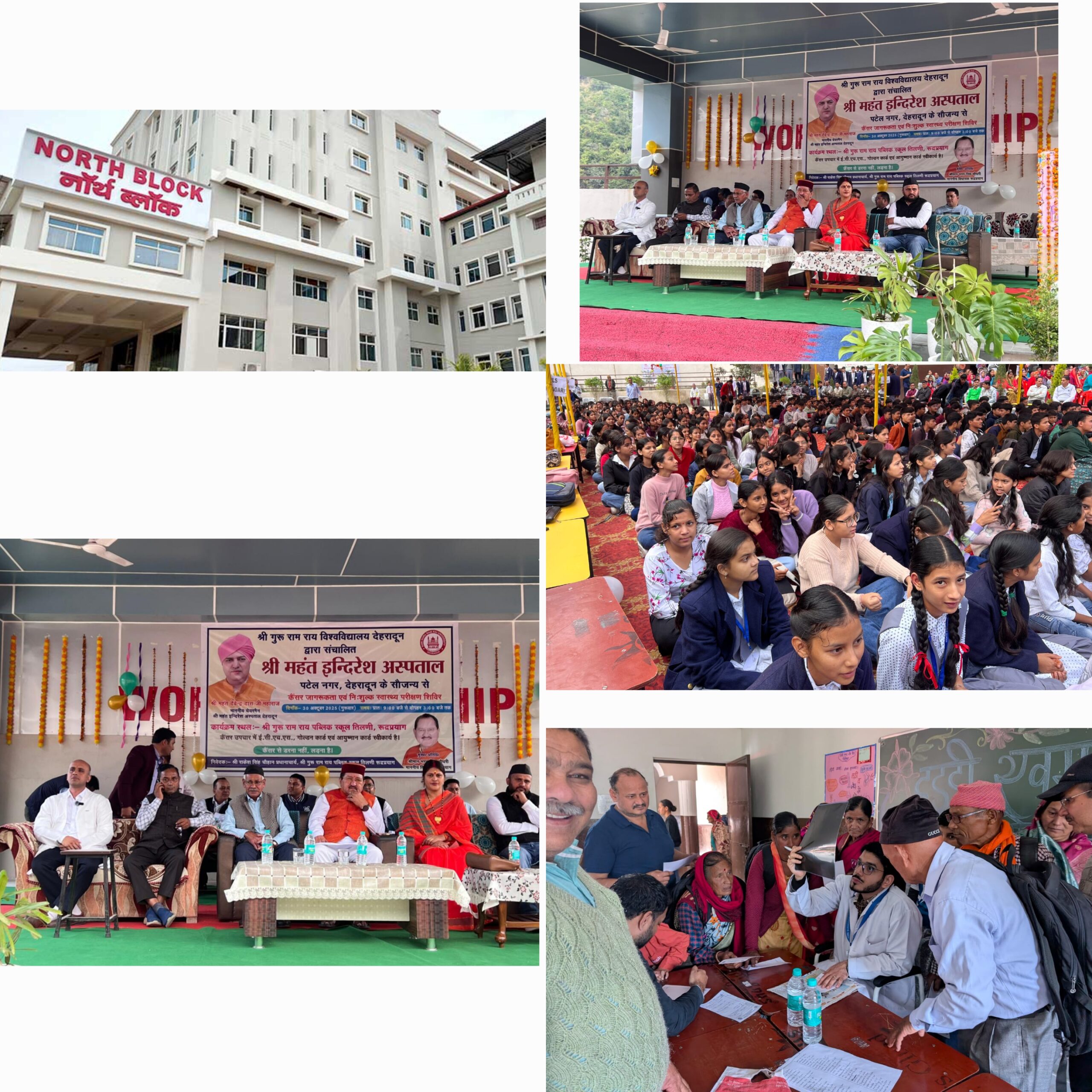 देहरादून। श्री गुरु राम राय विश्वविद्यालय एवम् श्री महंत इन्दिरेश अस्पताल, देहरादून के सौजन्य से श्री गुरु राम राय पब्लिक स्कूल, तिलणी, रुद्रप्रयाग में गुरुवार, 30 अक्टूबर 2025 को कैंसर जागरूकता एवं निःशुल्क स्वास्थ्य परीक्षण शिविर का सफल आयोजन किया गया। इस अवसर पर 2100 से अधिक मरीजों ने शिविर का लाभ उठाया। शिविर में अस्पताल के विशेषज्ञ चिकित्सकों ने स्वास्थ्य परामर्श दिया तथा रोगियों को निःशुल्क दवाइयाँ वितरित की गईं।