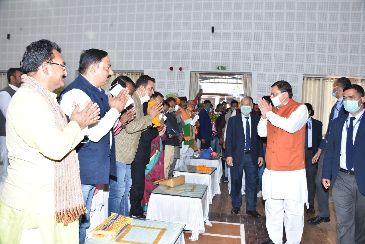 मुख्यमंत्री पुष्कर सिंह धामी द्वारा गन्ना मूल्य बढ़ाये जाने पर मंगलवार को मुख्यमंत्री आवास स्थित मुख्य सेवक सदन में कैबिनेट मंत्री स्वामी यतीश्वरानन्द के नेतृत्व में प्रदेश के किसानों के प्रतिनिधिमण्डल ने मुख्यमंत्री का आभार व्यक्त किया। इस अवसर पर कैबिनेट मंत्री रेखा आर्या भी उपस्थित थी।