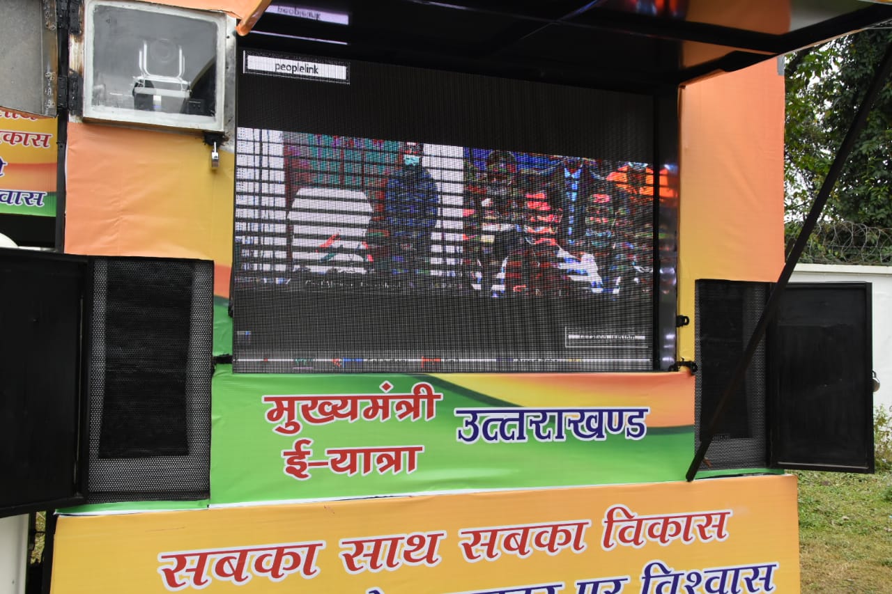 मुख्यमंत्री पुष्कर सिंह धामी ने शुक्रवार को मुख्यमंत्री आवास में मुख्यमत्री ई-यात्रा के अन्तर्गत मोबाइल वैन के जरिये वर्चुअल माध्यम से जनता से जुड़ने के लिए व्यवस्थाओं की जानकारी प्राप्त की। मुख्यमंत्री ने कहा कि प्रदेश के विभिन्न क्षेंत्रों की समस्याओं की जानकारी के साथ ही क्षेत्रीय जनता से आपसी संवाद की सुविधा इससे उपलब्ध होगी। उन्होंने इसे प्रदेश के विकास यात्रा में जन सहभागिता का भी प्रयास बताया।