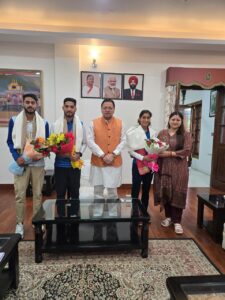 मुख्यमंत्री पुष्कर सिंह धामी से पेरिस ओलिंपिक में प्रतिभाग कर लौटे खिलाड़ियों अंकिता ध्यानी, परमजीत सिंह एवं सूरज पंवार ने भेंट की