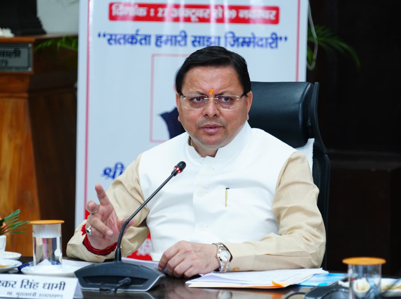मुख्यमंत्री श्री पुष्कर सिंह धामी ने सोमवार को सचिवालय में ‘‘सतर्कता-हमारी साझा जिम्मेदारी’’ थीम पर आधारित जन जागरूकता कार्यक्रम का शुभारंभ किया। यह जन जागरूकता कार्यक्रम प्रदेशभर में राज्य स्थापना दिवस 09 नवम्बर 2025 तक चलाया जाएगा। इस अवसर पर मुख्यमंत्री ने अधिकारियों को सत्यनिष्ठा की प्रतिज्ञा भी दिलाई।