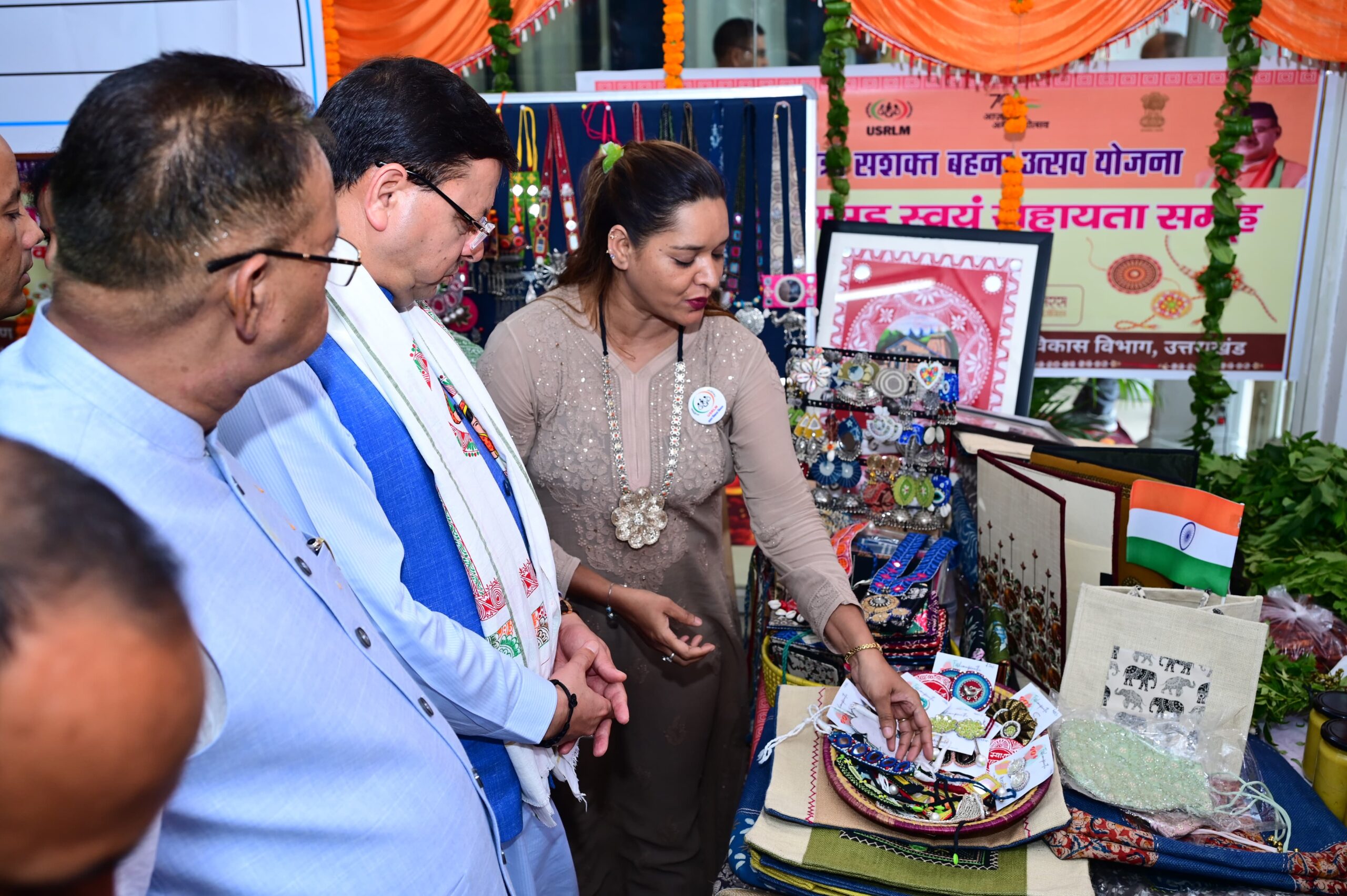 मुख्यमंत्री धामी ने मुख्यमंत्री सशक्त बहना उत्सव योजना एवं मुख्यमंत्री महिला स्वयं सहायता समूह सशक्तिकरण योजना के अन्तर्गत महिला समूहों द्वारा लगाए गए स्टॉलों का शुभारंभ किया