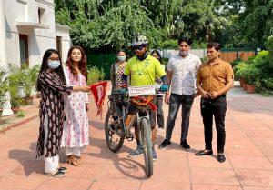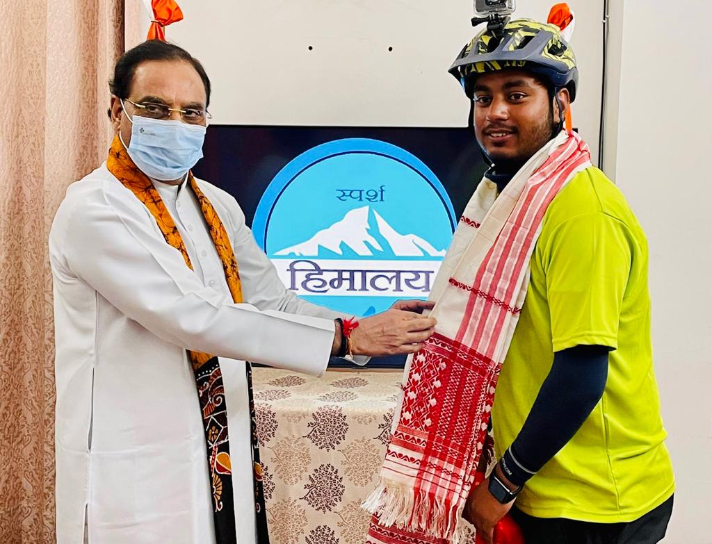 बद्रीनाथ (सतोपंथ) से कन्याकुमारी की साइकिल यात्रा पर निकले साहसी युवा द्वारा पूर्व शिक्षा मंत्री भारत सरकार से भेंट कर उनका धन्यवाद किया