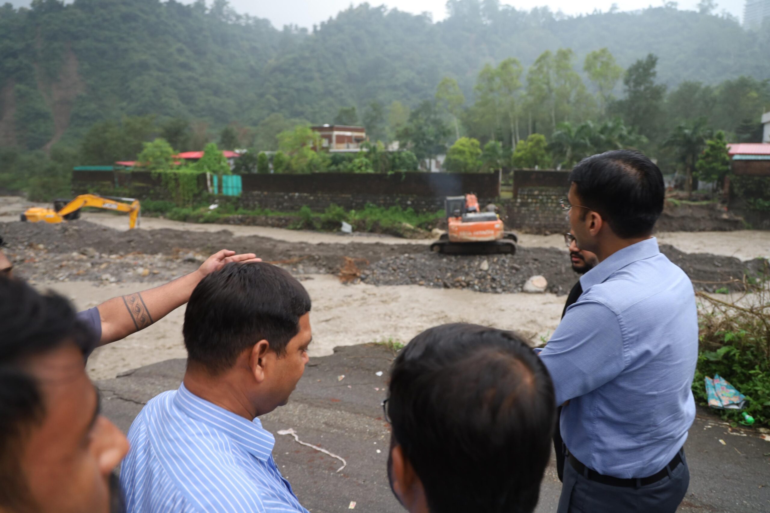 अतिवृष्टि के कारण कुमाल्डा, द्वारा झूला पुल की एप्रोच धस गई थी। यहां पर खेल मैदान भी पूरी तरह से वॉसआउट हुआ है। लोनिवि द्वारा यहां पर एप्रोच ठीक कर यातायात सुचारू कर दिया गया है। जिलाधिकारी ने नदी को चौनलाइज करने के बाद वयारक्रेट कर पुल की एप्रोच को शीघ्र ठीक कराने के निर्देश दिए। वही जिलाधिकारी ने मालदेवता मोटर मार्ग पर किसनपुर बांडावाली में सड़क के 150 मीटर वॉसआउट पोर्सन का स्थलीय निरीक्षण किया। यहां पर अनधिकृत एप्रोच बनाकर नदी का रूख पलटने और रिजाल्ट निर्माण के कारण सरकारी सपंत्ति को करीब 06 करोड़ का नुकसान पहुंचा है। जिलाधिकारी ने इस पर सख्त रूख इख्तियार करते हुए नदी का रूख पटलकर अनधिकृत एप्रोच एवं रिजाल्ट निर्माण के खिलाफ उच्च स्तरीय जांच कराने की संस्तुति कर दी है। साथ ही जिलाधिकारी ने लोनिवि को यहां पर नदी को चौनलाइज करते हुए शीघ्र सड़क निर्माण कार्य शुरू करने के निर्देश भी दिए है। मालदेवता केशरवाला में वॉसआउट मोटर मार्ग का निरीक्षण करते हुए जिलाधिकारी ने वायरक्रेट लगाकर शीघ्र रास्ता चालू करने और नदी को चौनलाइज करते हुए सड़क के वॉसआउट पोर्सन ठीक करने के निर्देश दिए।