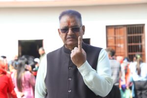 देहरादून, 23 जनवरी। कैबिनेट मंत्री गणेश जोशी ने आज निकाय चुनाव के दृष्टिगत लोकतंत्र के महापर्व मतदान दिवसर के अवसर पर मसूरी विधानसभा क्षेत्र के अंतर्गत देहरादून नगर निगम क्षेत्र के वार्ड नंबर 11 (विजय कॉलोनी ) बूथ संख्या 77, गुरुराम राय पब्लिक स्कूल कालीदास रोड़ में अपनी धर्मपत्नी निर्मला जोशी एवं परिवार के सदस्यों के साथ अपने मताधिकार का प्रयोग कर लोगों को प्रेरित किया।