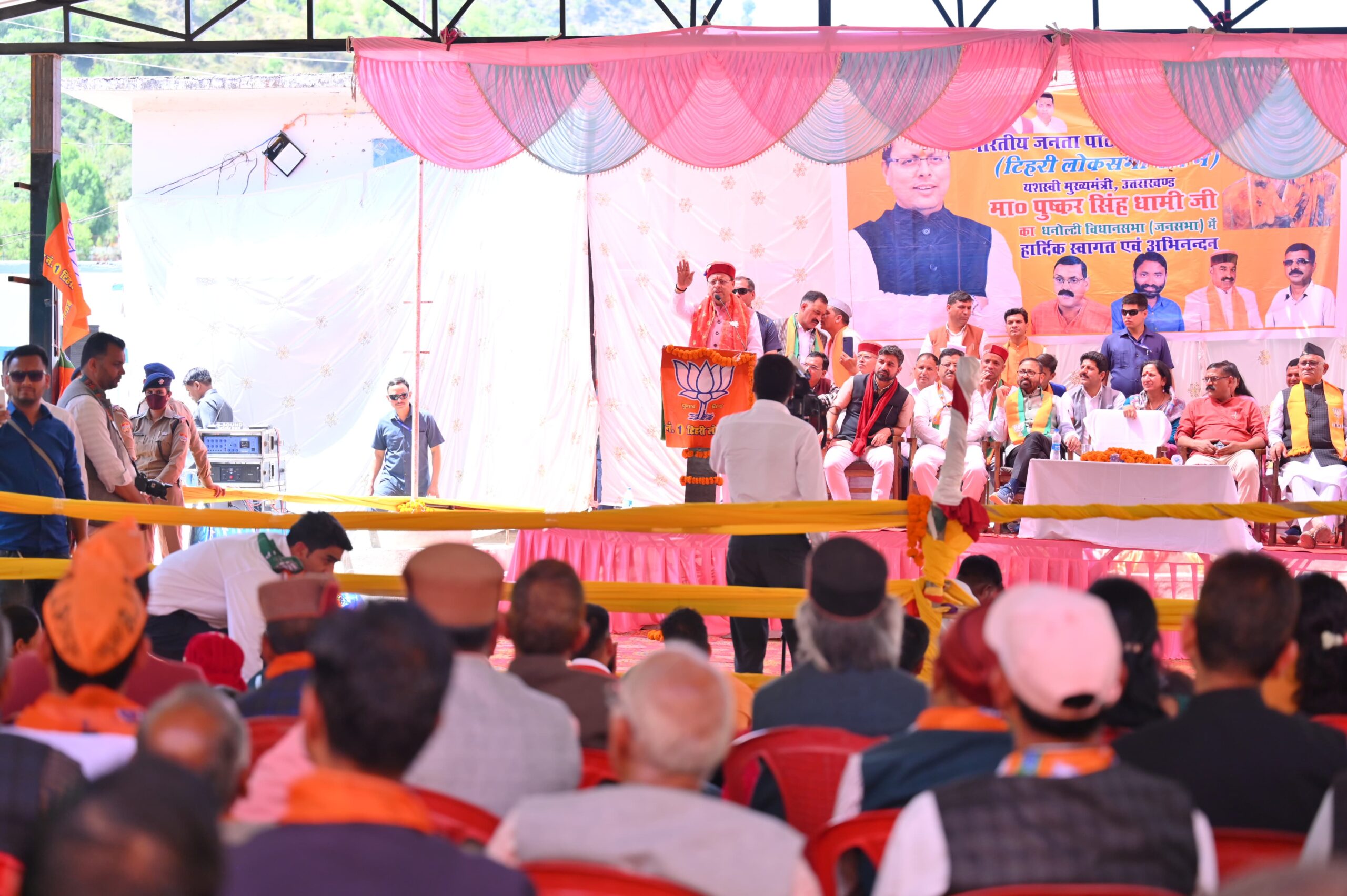 मुख्यमंत्री धामी ने थत्यूड, टिहरी मे भाजपा प्रत्याशी माला राज लक्ष्मी शाह के पक्ष में आयोजित जनसभा में प्रतिभाग किया