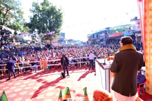मुख्यमंत्री श्री धामी ने कहा कि निकाय क्षेत्रों में ट्रिपल इंजन सरकार बनने पर क्षेत्र में विकास कार्यों की गति तीन गुना बढ़ जाएगी।