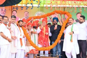 मुख्यमंत्री ने कहा कि प्रधानमंत्री श्री नरेंद मोदी जी के नेतृत्व में हमारा देश विश्व शक्ति के रूप में आगे बढ़ा है। हर बड़ी घटना में आज विश्व को भारत के रुख का इंतजार रहता है। बीते 10 वर्षो में स्वास्थ्य, सड़क, रेल, इंफ्रास्ट्रक्चर डेवलपमेंट, आधुनिकता के क्षेत्र में देश तेजी से आगे बढ़ा है। आज भारत दुनिया की पांचवीं सबसे बड़ी अर्थव्यवस्था बन गया है। प्रधानमंत्री जी ने भारत को दुनिया की सबसे बड़ी अर्थव्यवस्था बनाने का संकल्प लिया है। उन्होने कहा प्रधानमंत्री जी के नेतृत्व में धारा 370 को समाप्त करने का ऐतिहासिक कार्य किया गया है। धारा 370 समाप्त होने के बाद पहली बार चुनाव होने जा रहे हैं। जो अपने आप में ऐतिहासिक है।