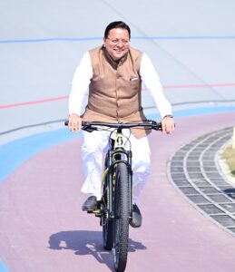 मुख्यमंत्री ने गुरुवार को मनोज सरकार स्पोर्टस स्टेडियम में 38वें राष्ट्रीय खेलों के अन्तर्गत शिवालिक वेलोड्रम मे टैªक साइकिलिंग प्रतियोगिता को दर्शक दीर्घा से देखा। उन्होंने वेलोड्रम पहुंचकर खिलाड़ियो से परिचय प्राप्त कर टैªक पर साइकिलिंग भी की। इसके बाद मुख्यमंत्री ने पुरूष वर्ग के टीम परस्यूट डिस्टेंस 4000 मीटर प्रतियोगिता में स्वर्ण पदक विजेता सर्विसेज स्पोर्टस कंट्रोल बोर्ड, रजत पदक विजेता पंजाब व कांस्य पदक विजेता राजस्थान को मैडल व पहाड़ी टोपी पहनाकर सम्मानित किया। इसके उपरान्त मुख्यमंत्री ने खिलाड़ियों के साथ भोजन किया व खिलाड़ियों के लिए की गई व्यवस्थाओं के बारे में खिलाड़ियों से जानकारी ली जिस पर खिलाड़ियो ने सभी प्रकार की व्यवस्थाओं पर प्रसन्नता व्यक्त की।