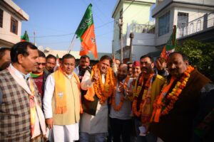 रूद्रपुर। भाजपा मेयर प्रत्याशी विकास शर्मा नगर निगम के वार्ड 32 भूरारानी, हंस विहार फेस 1 स्वागत इंक्लेव, बसंुधरा फेस 2 सहित कई कालोनियों में भाजपा नेताओं और सैकड़ों कार्यकर्ताओं के साथ धुंआधार जनसंपर्क करते हुए भाजपा के पक्ष में मतदान की अपील की। इस दौरान जगह जगह विकास शर्मा का लोगों ने फूल मालाओं से स्वागत किया और उन्हें विजयी बनाने का आश्वासन दिया।