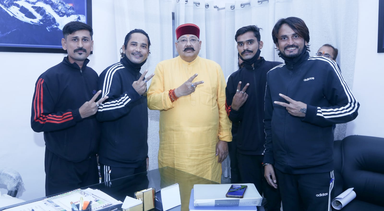 माउंट एवरेस्ट पर तिरंगा फहराने के साथ-साथ 11 देशों में 4 लाख 21 हजार किलोमीटर की पैदल यात्रा करने वाले पर्वतारोही दल के सदस्यों ने शनिवार को प्रदेश के पर्यटन, लोक निर्माण, सिंचाई, धर्मस्व एवं संस्कृति मंत्री सतपाल महाराज से सुभाष रोड स्थित उनके कैंप कार्यालय पर मुलाकात कर आशीर्वाद लिया।