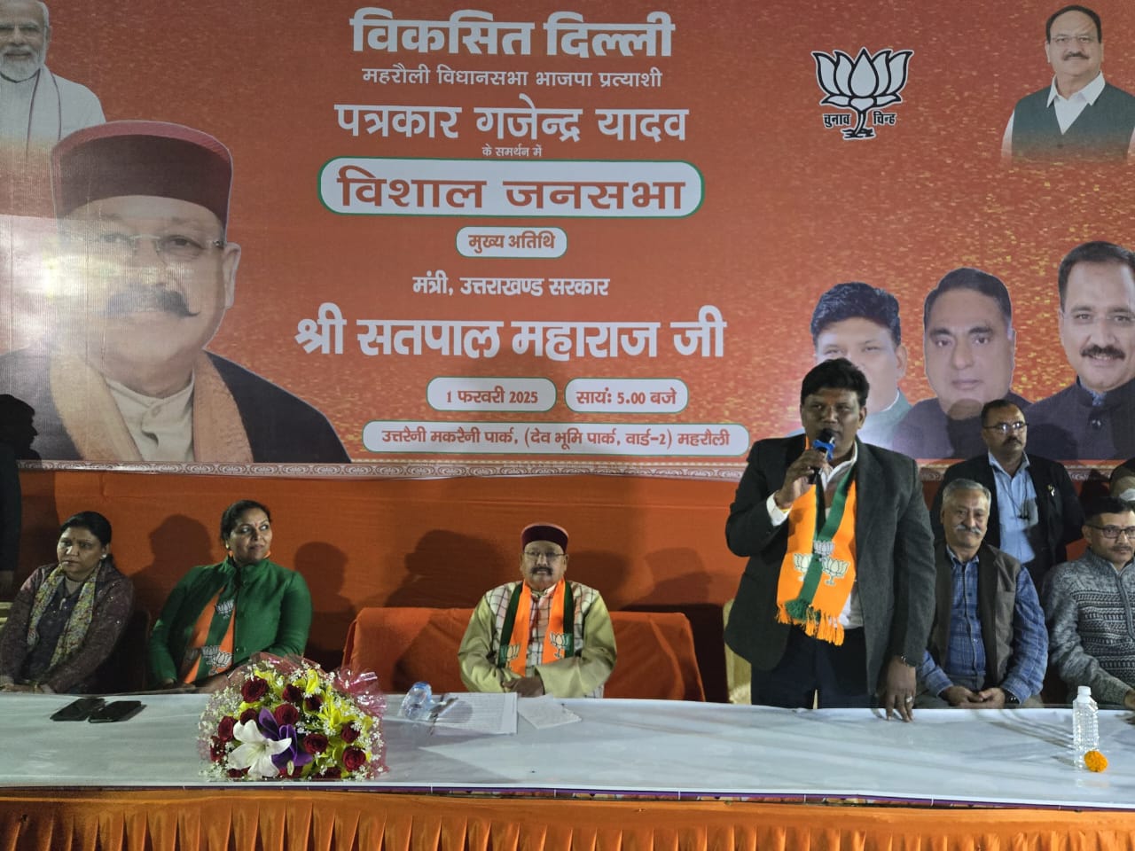 उक्त बात प्रदेश के पर्यटन, लोक निर्माण, सिंचाई, पंचायतीराज, ग्रामीण निर्माण, जलागम, धर्मस्व एवं संस्कृति मंत्री सतपाल महाराज ने महरौली विधानसभा क्षेत्र से भाजपा प्रत्याशी राजेन्द्र यादव के समर्थन में देवभूमि पार्क में आयोजित चुनावी सभा को सम्बोधित करते हुए कही। उन्होंने कहा कि पिछले 10 वर्षों से दिल्ली में केजरीवाल की लूट और झूठ की सरकार चल रही है। आम आदमी पार्टी की सरकार ने दिल्ली की जनता को आयुष्मान भारत योजना के तहत मिलने वाली पांच लाख रुपए तक की फ्री इलाज की सुविधा से दूर रखा है।